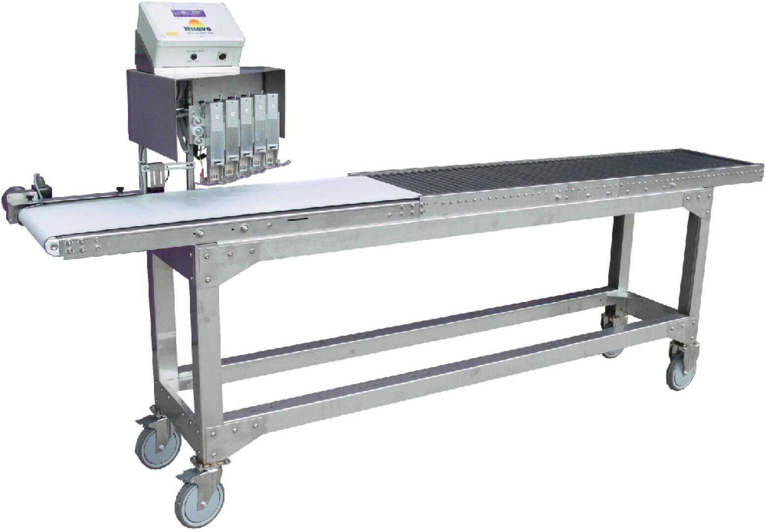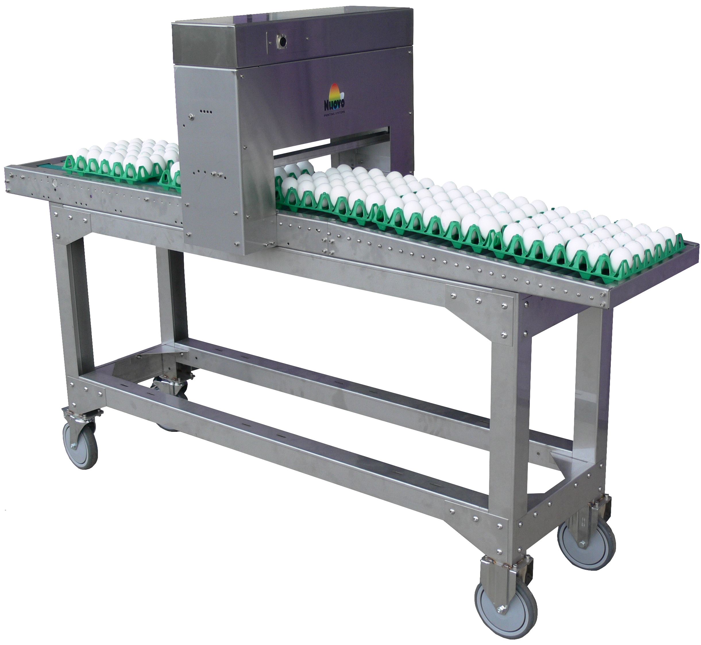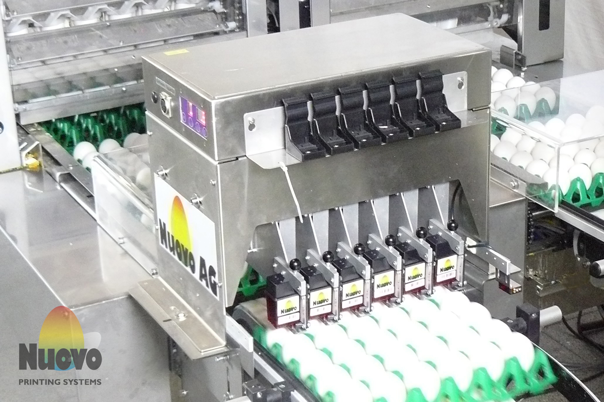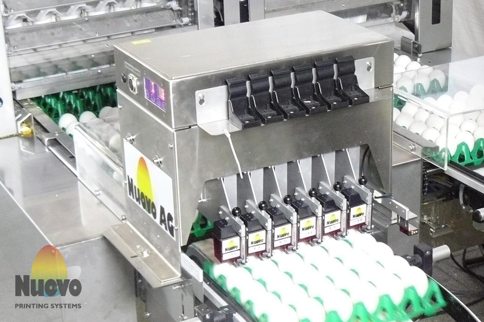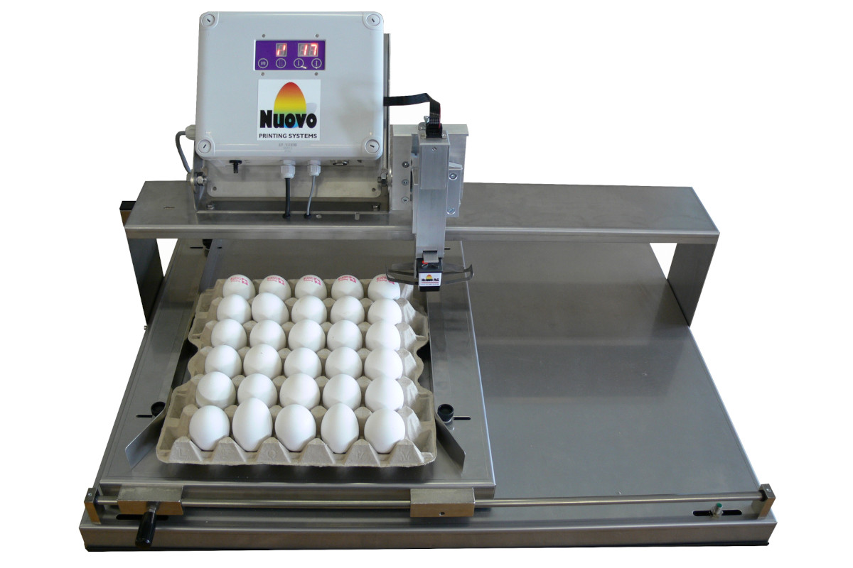 Beschriften Sie Eier bequem mit Texten, Motiven und Datum. Die Geräte gibt es in verschiedenen Ausführungen z.B. als kleines Tischgerät, Geräte mit eigenem Eierhöcker-Fördersystem, oder als Anbaugeräte an verschiedene Sortier- und Verpackungsmaschinen.