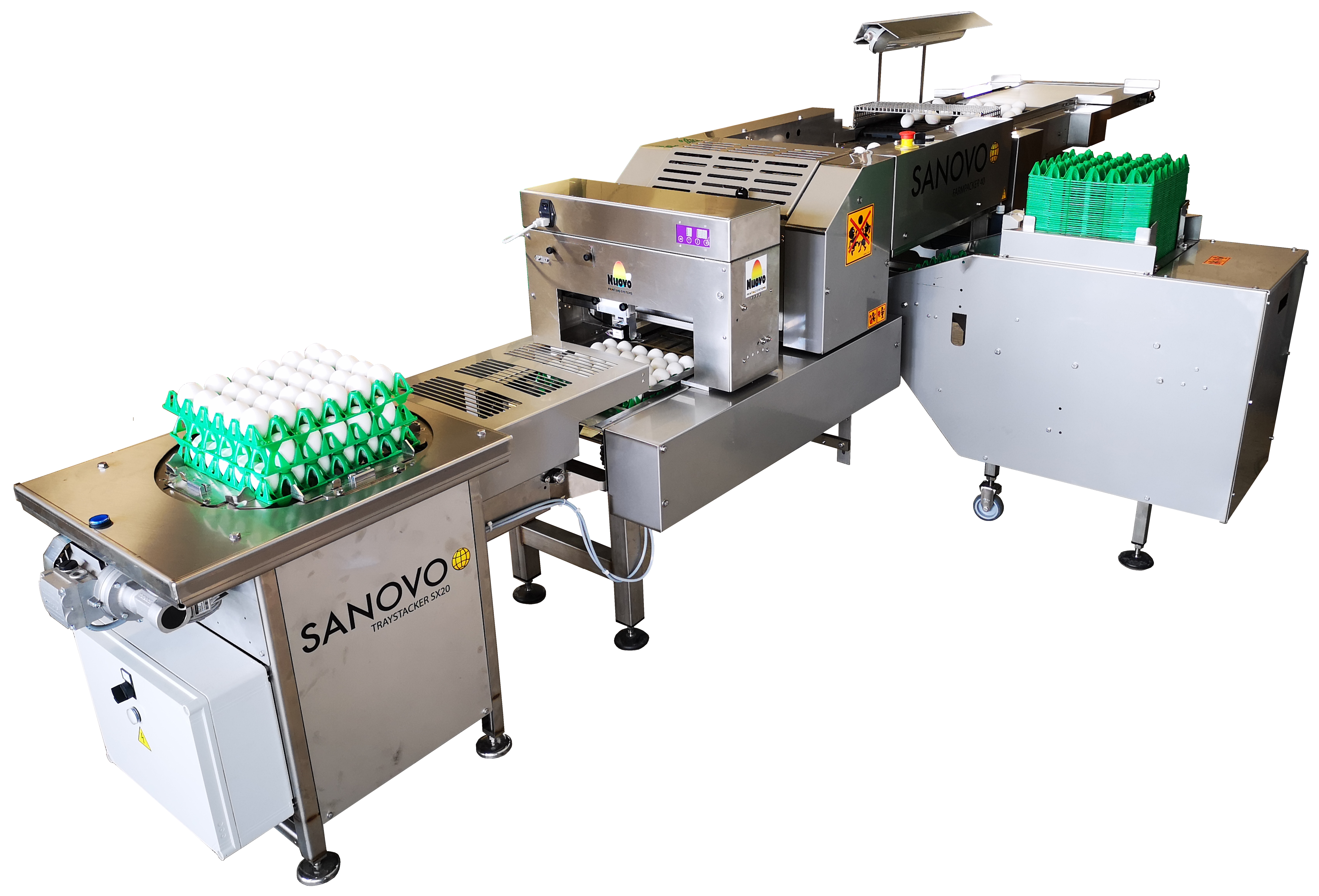 Die kompakte Gerätekombination aus Farmpacker, Höckerstapler und Eierbeschriftungsgerät ermöglicht das vollautomatische Abpacken, Beschriften und Stapeln von Eiern – effizient in nur einem Arbeitssschritt.