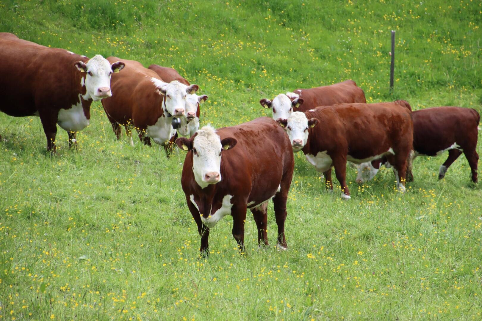 Fünf Mutterkühe, ihre Kälber – und ein stattlicher Stier!