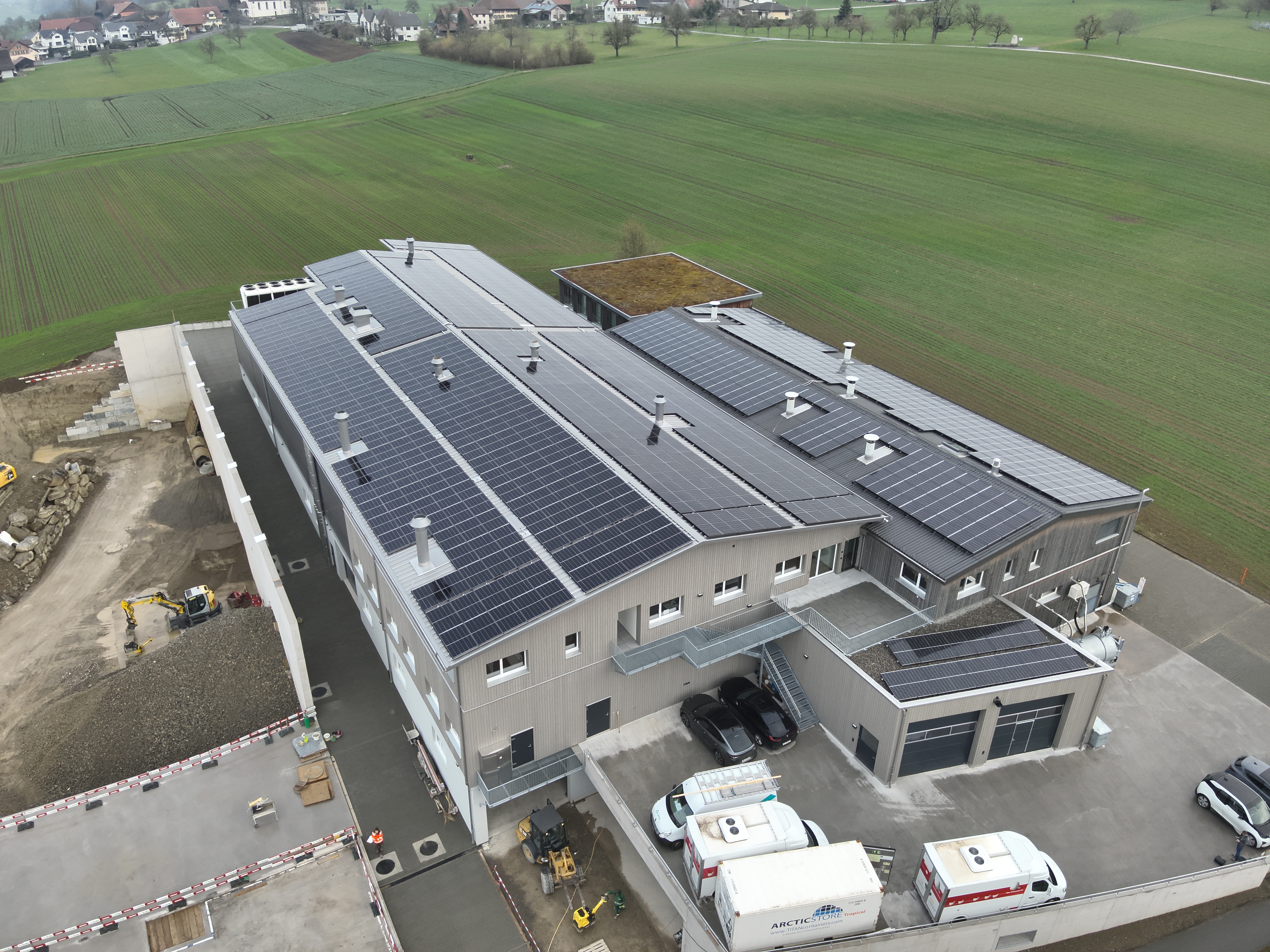 Die Abwärme der Bruteier sowie der gesamten Produktion wird in einem 300m3 grossen Wasserbecken, welches grundsätzlich als Löschwasser-Reserve errichtet wurde, gespeichert. Diese Abwärme kann bei Bedarf wieder ins System eingebracht werden. Damit wird verhindert, dass die Abwärme ungenutzt in die Umwelt geht. Der allergrösste Teil der restlichen Energie wird über eine grosse Photovoltaik-Anlage erzeugt.