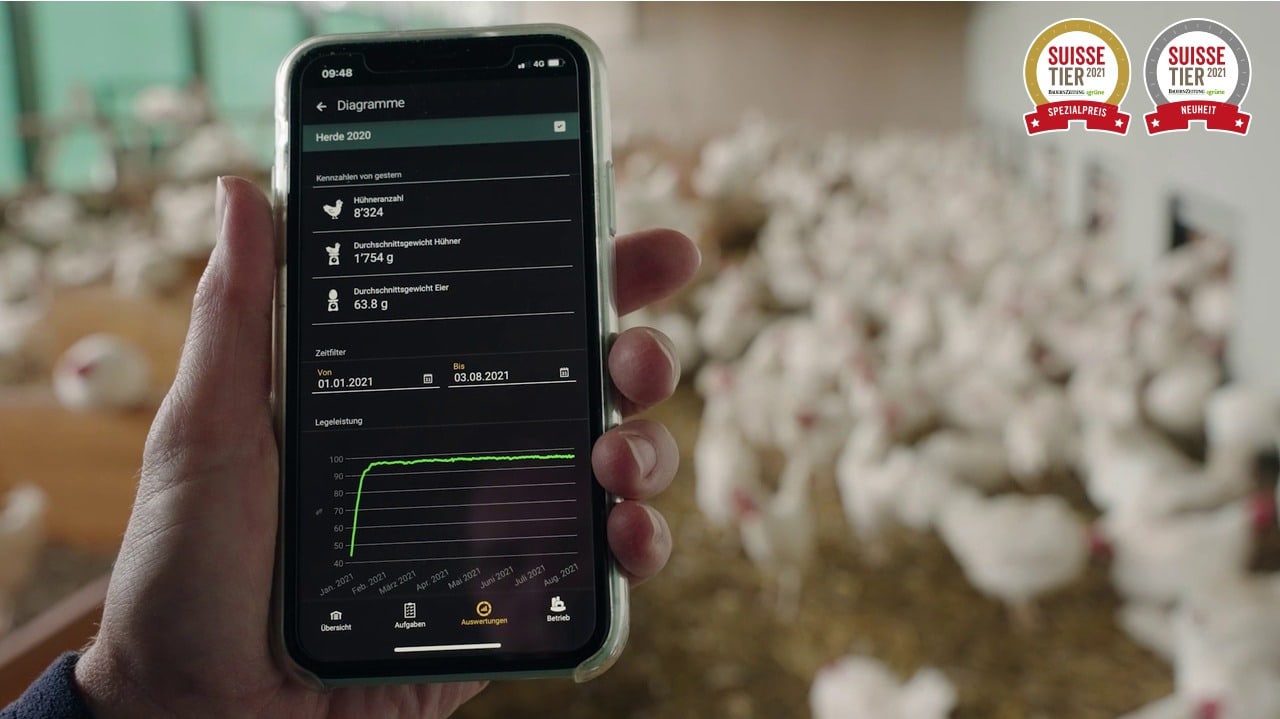 Schweizer Geflügelbetriebe erfassen Daten wie die Anzahl gelegter Eier oder die Behandlungen oft noch von Hand. Um Auswertungen zu machen oder Vergleiche zu ziehen, müssen die Zahlen aufwändig ins Excel übertragen werden.