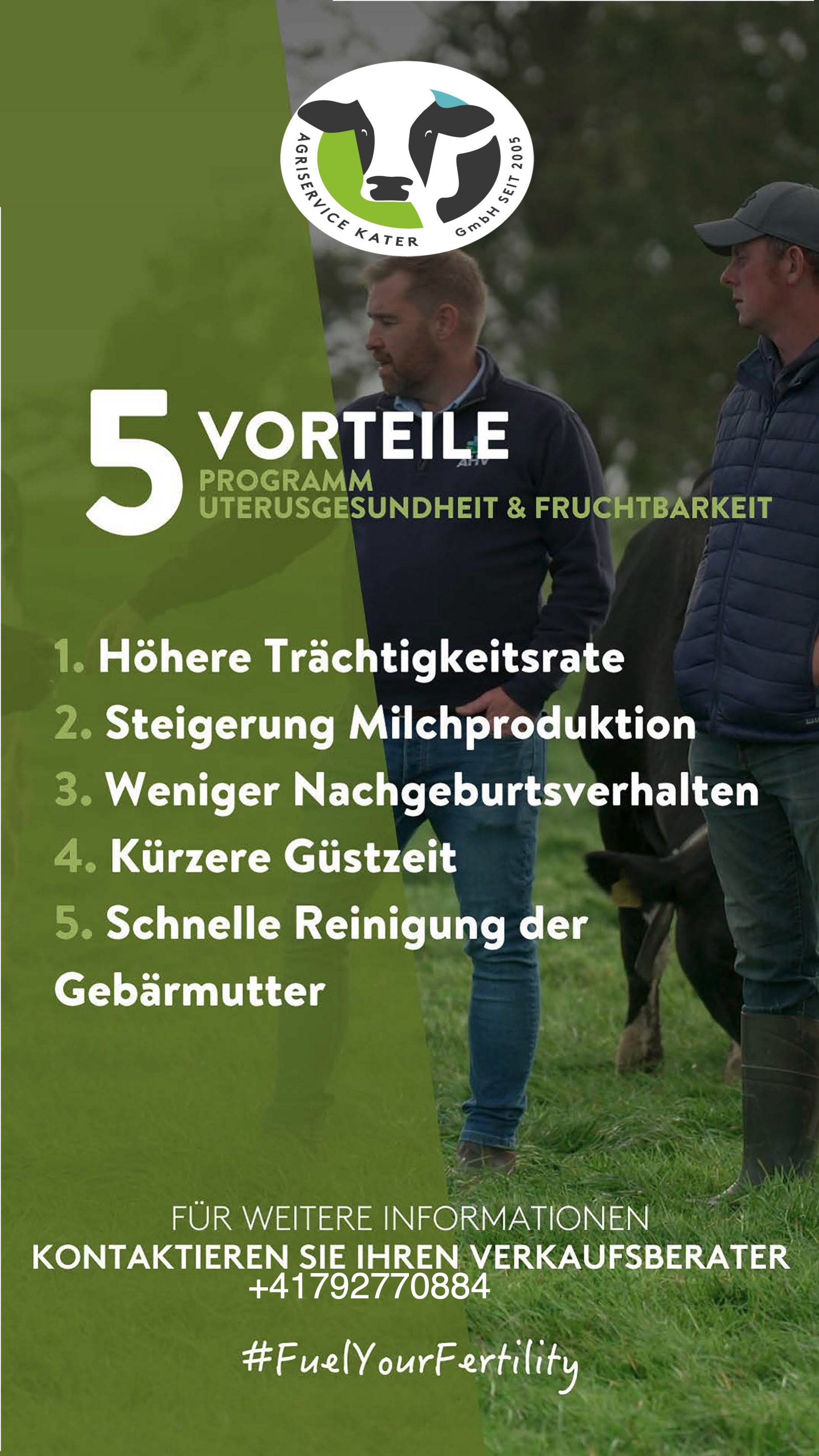 Fruchtbare Tiere sind für einen Milchviehbetrieb unerlässlich. Die Gebärmutter der Kuh durchläuft einen Prozess der Regeneration, bevor sie in der Lage ist, den Reproduktionszyklus wieder aufzunehmen. Eine gesunde Gebärmutter hat einen positiven Einfluss auf die Fruchtbarkeit, welche entscheidend ist für das wirtschaftliche Ergebnis und ein Indikator für die Gesundheit und das Wohlbefinden jeder Kuh.